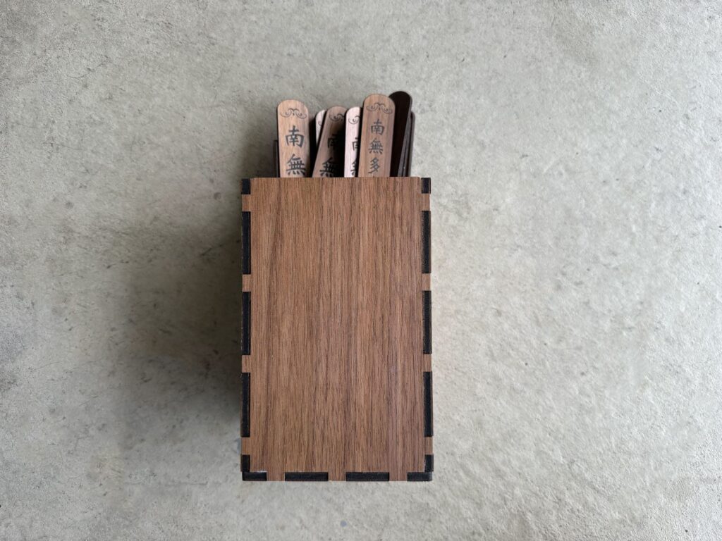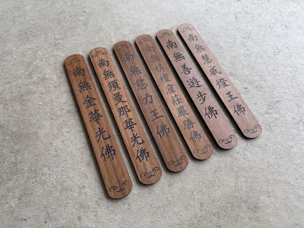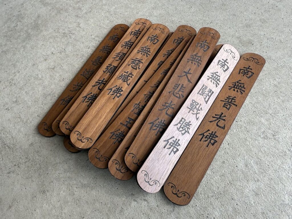 發佈於 3 11 月, 20255 11 月, 2025 作者: mupi service客製化木製籤筒 產品介紹:以天然胡桃椴木製作,質地細膩、色澤溫潤。籤身厚度5mm、尺寸2.5×18cm,木紋與雷射雕刻字體完美融合,呈現典雅莊嚴的氛圍。搭配10×10×17cm木製籤桶,以榫接結構打造,穩固耐用且富工藝美感。整體設計可依客戶需求客製字樣與佛號,適合寺院、佛堂或個人修持使用,兼具收藏與供奉意義。產品特色:材質:胡桃椴木 5mm竹籤尺寸:2.5×18cm籤桶尺寸:10x10x17cm客製化地點:高雄(全台服務)