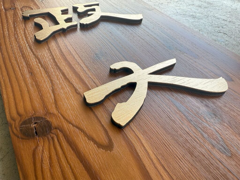 發佈於 24 6 月, 202529 7 月, 2025客製店面原木招牌製作 產品介紹:這次我們替客戶製作的原木招牌,展現出自然質樸與沉穩大氣的風格。選用實心原木作為底板,保留木紋的自然流動與節點紋理,再搭配立體木頭字雕刻並上色,層次感十足。每個字體經過細緻打磨與上漆,讓整體視覺兼具溫潤與力量,成為門面中極具辨識度的一環。產品特色:1.長寬高可訂製2.立體金色文字富有質感3.可訂製各種字體尺寸: 27X88cm材質:深色木12mm+金色木頭字5mm客製化地點:台北市(全台可接單)