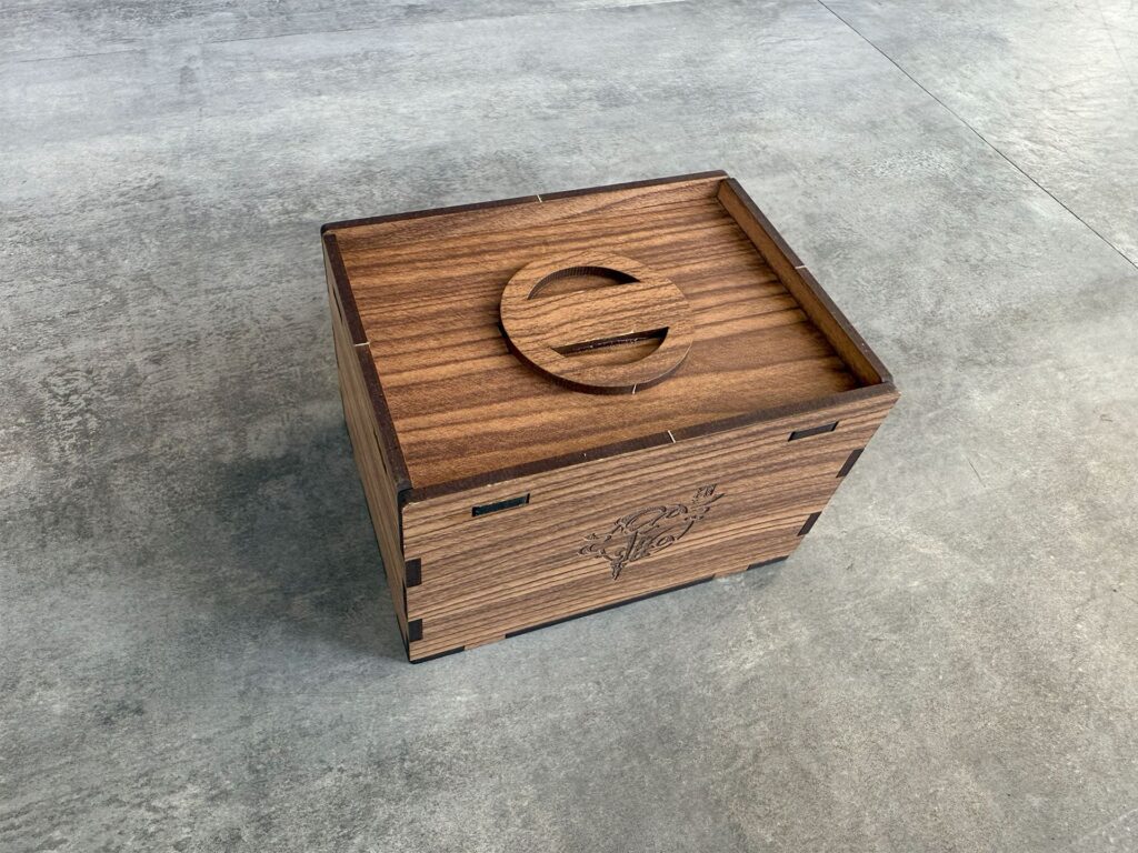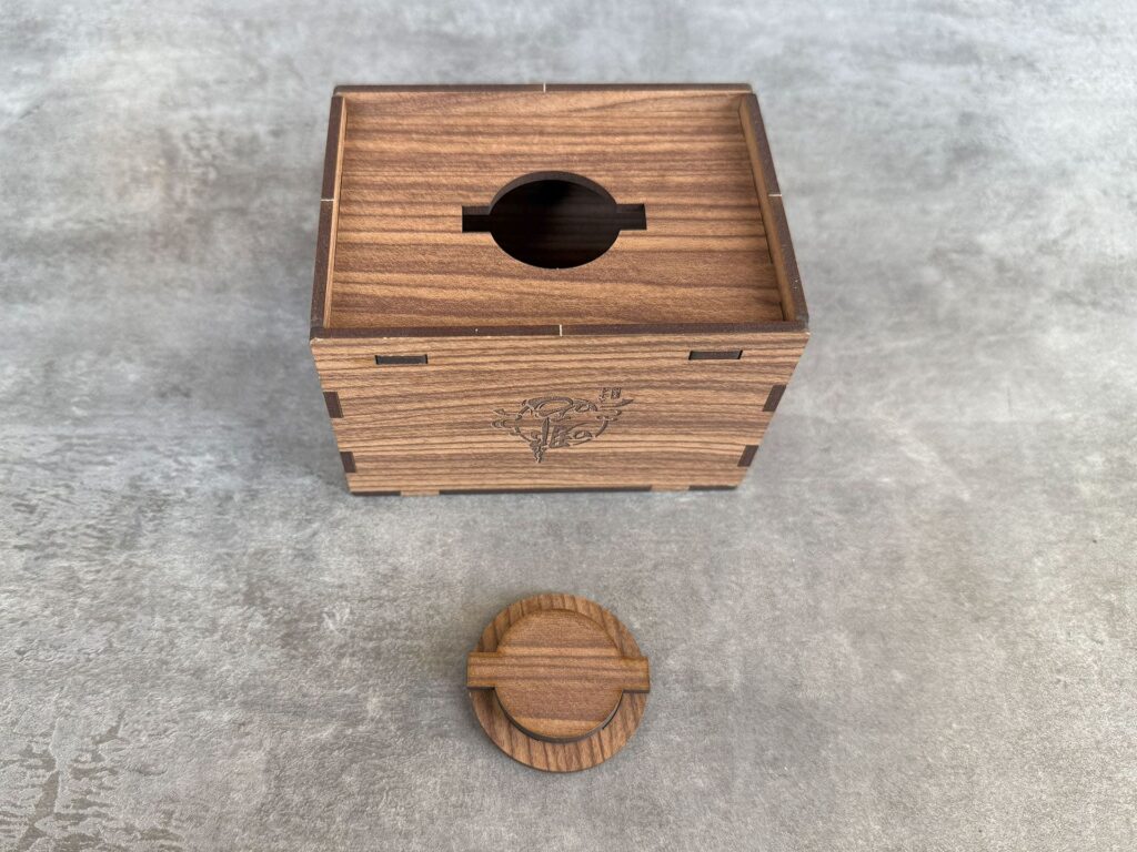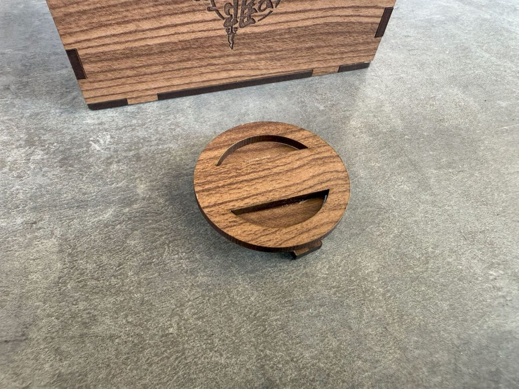 發佈於 18 6 月, 202526 11 月, 2025客製化木製小費箱(打賞箱) 產品介紹:這款客製化木製小費箱專為品牌設計打造,使用3mm胡桃木板雷射切割與雕刻製作,展現自然質感與工藝細節。外觀簡約俐落,刻有專屬圖樣,提升整體識別度。特別的是底部設有獨創出錢旋鈕蓋,讓收取小費更加便利且安全,兼顧實用性與創意巧思。非常適合擺放於市集、櫃台或展演場域,是結合機能與美感的客製化木製小費箱。歡迎洽詢專屬訂製! 產品特色:1.長寬高可訂製2.可雷射雕刻LOGO以及圖案3.底部有獨創設計出錢旋鈕蓋尺寸: 10X7.5X7cm材質:胡桃3mm客製化地點:全台可接單