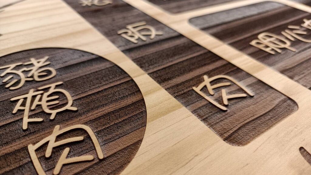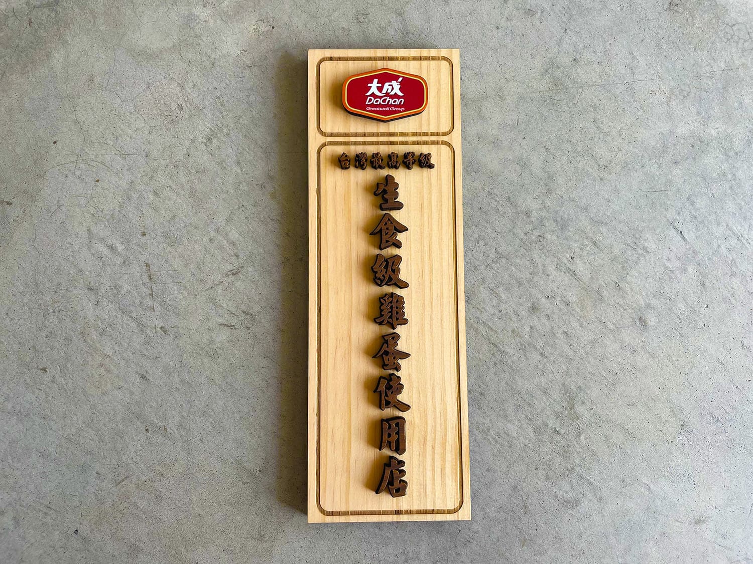 發佈於 5 8 月, 20255 8 月, 2025客製化生食級使用木牌 產品介紹:這款客製化木製招牌是結合細膩工藝與高質感材料的精品之作。招牌本體以松木為基底,搭配胡桃椴木製作的雙層立體字,營造出層次分明的視覺效果,細節精緻、質感升級。上方的品牌徽章採用彩色直噴貼紙製作,色彩飽和不易脫落,呈現專業又吸睛的形象。適合各式店家作為形象識別或品牌加值展示。無論是掛在牆上或作為櫃檯擺飾,皆能提升空間質感與專業度,是極具辨識度與質感的木作選擇。產品特色:尺寸:30 × 10 cm底板材質:松木 12mm字體材質:胡桃椴木 5mm字體樣式:獨創雙層立體字