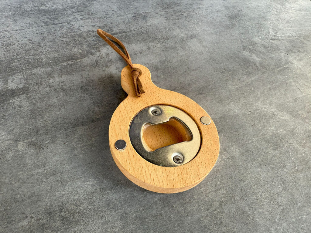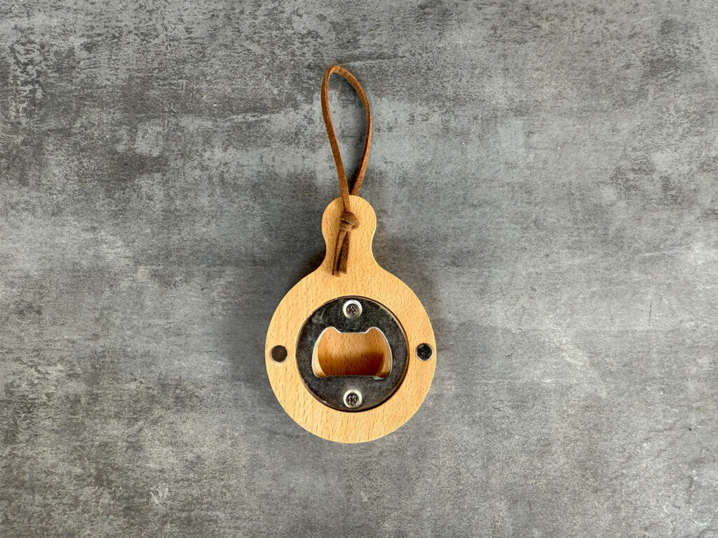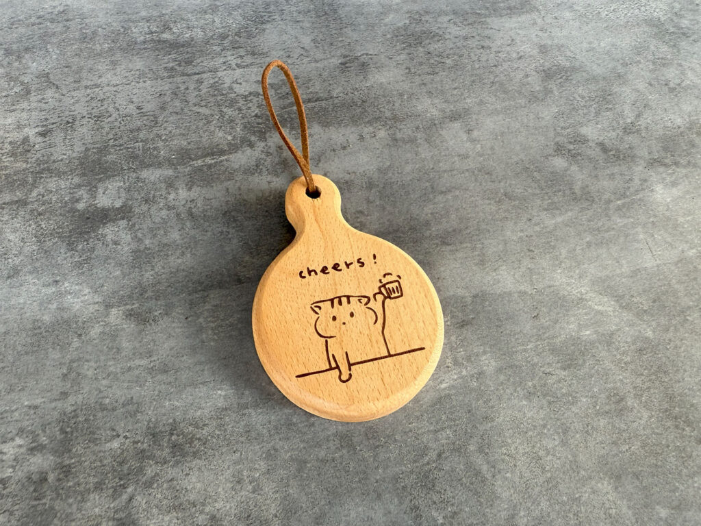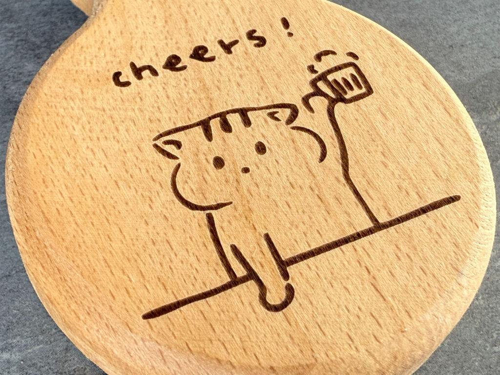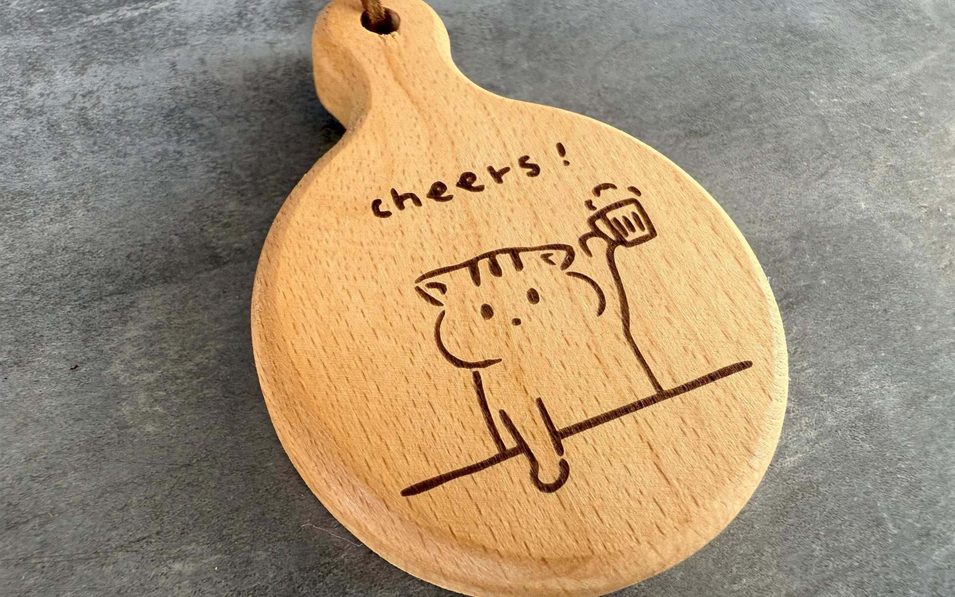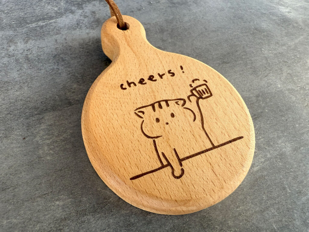 發佈於 4 7 月, 20255 11 月, 2025客製實木開瓶器(雷射雕刻代工) 產品介紹:這款「客製實木開瓶器」以天然山毛櫸木精製,手感溫潤細膩,搭配雷射雕刻呈現舉杯貓咪的可愛插畫,文字「cheers!」增添歡樂氛圍,成為送禮或居家小物的療癒選擇。背面搭載金屬開瓶器與磁鐵吸附設計,開瓶俐落便利不掉蓋。附有皮繩可吊掛收藏,美觀實用兼具。可接受圖案客製,打造專屬風格,極適合做為品牌贈品、婚禮小物或節慶禮盒搭配。產品特色:1.圖案可以客製化2.各類禮贈品可代工雕刻3.數量多價格可談材質:山毛櫸木1cm尺寸:8.5 X 6cm配件:牛皮繩