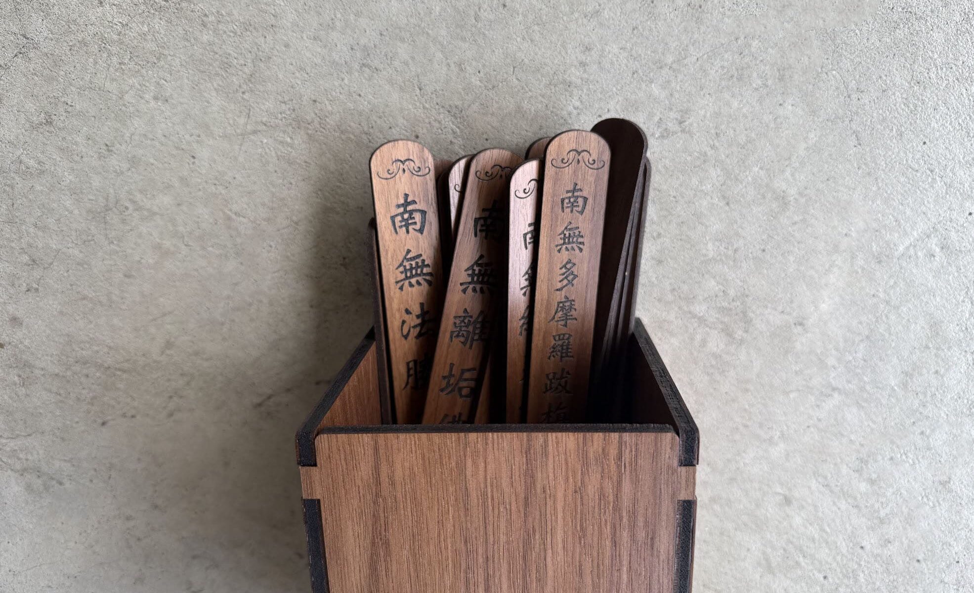 發佈於 3 11 月, 20255 11 月, 2025客製化木製籤筒 產品介紹:以天然胡桃椴木製作,質地細膩、色澤溫潤。籤身厚度5mm、尺寸2.5×18cm,木紋與雷射雕刻字體完美融合,呈現典雅莊嚴的氛圍。搭配10×10×17cm木製籤桶,以榫接結構打造,穩固耐用且富工藝美感。整體設計可依客戶需求客製字樣與佛號,適合寺院、佛堂或個人修持使用,兼具收藏與供奉意義。產品特色:材質:胡桃椴木 5mm竹籤尺寸:2.5×18cm籤桶尺寸:10x10x17cm客製化地點:高雄(全台服務)